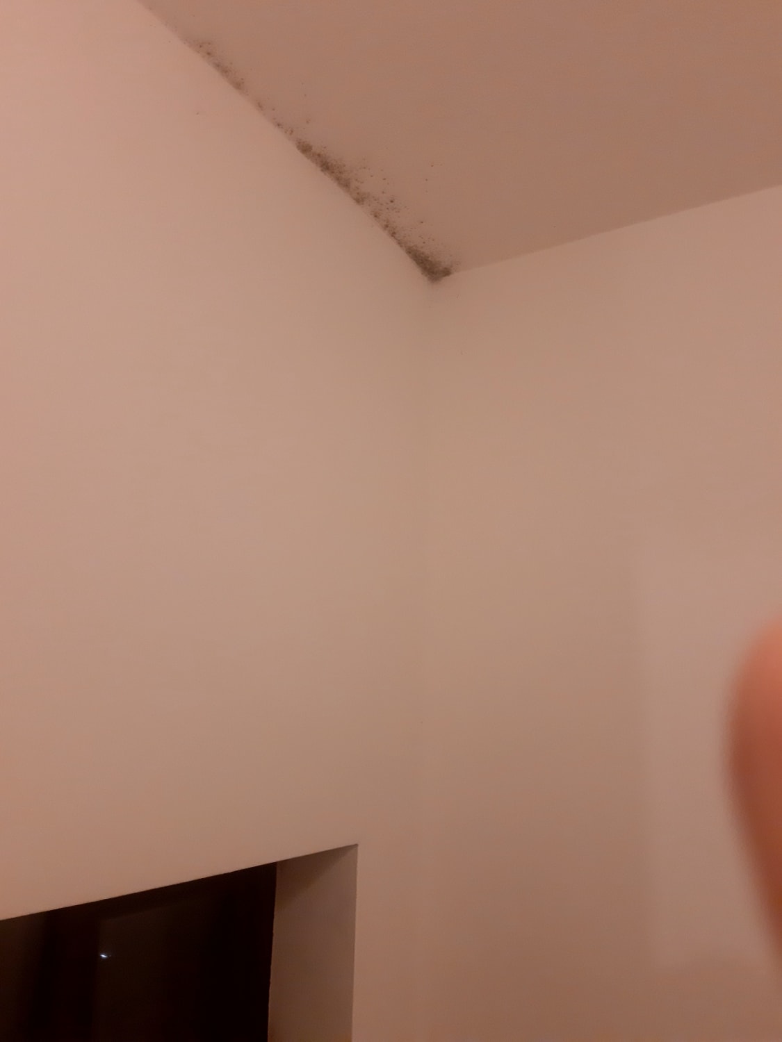 Roof repair needed in Stoke-on-Trent due to water ingress causing damp issues in the corner of the property. Signs of water damage visible on the ceiling.