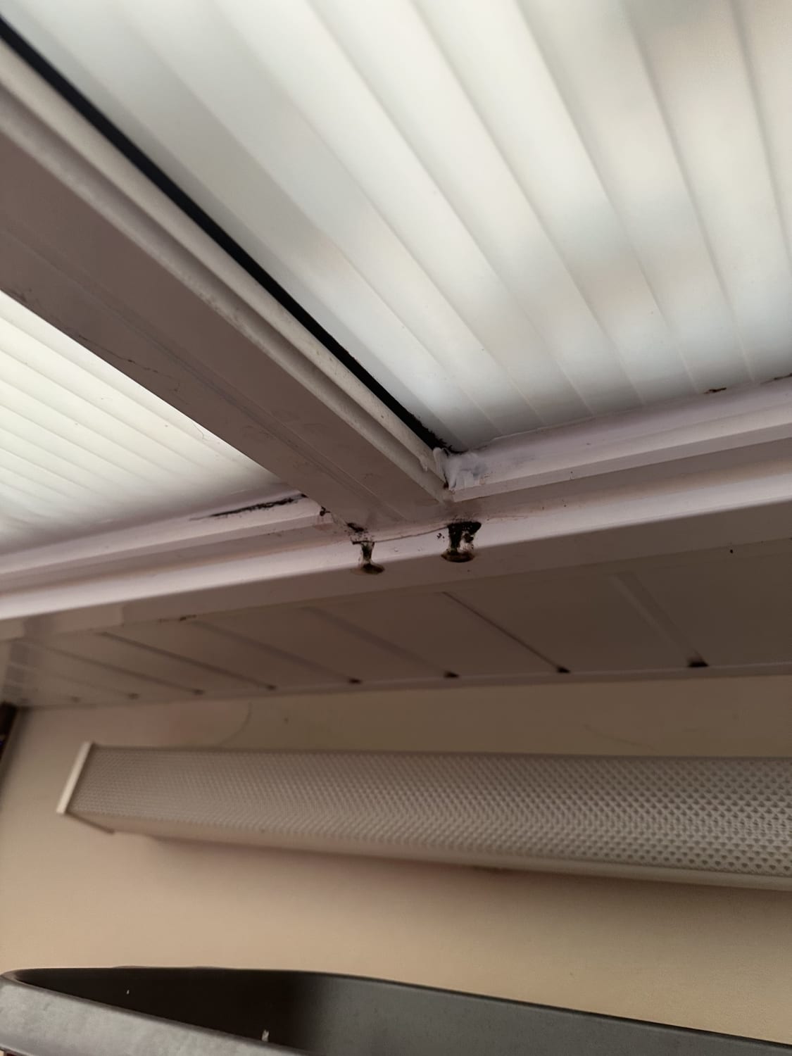 A pitched garage roof in Northampton has suffered storm damage, with one panel broken in half and another potentially leaking. The roof may contain asbestos, requiring specialist repair or replacement.
