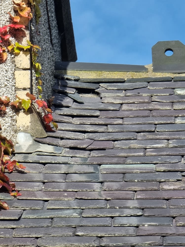 Repairing a pitched slate roof in Peterhead with replacement and realignment of slates, plus potential roof vent installation. Learn the steps and costs involved.